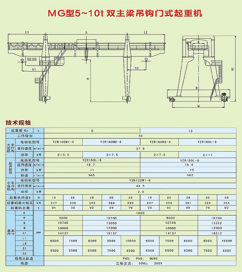 LH型5t、10t、16t電動(dòng)葫蘆橋式起重機(jī)